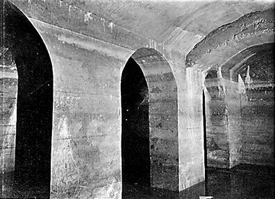 污水处理要比雨水处理复杂得多,污水处理设施也是下水道系统设计的精华所在。在污水下水管道的规划中,总督府提出要在已建有密集房屋的欧人区、大鲍岛华人区和德国兵营,装设能冲刷粪便的下水道系统。污水处理采用当时最先进的技术,实行分区排泄。全市依地势分为四个集水区域,各区水道中的污水进入四个集水总道,顺着地势,往偏僻海域流去。为了确保青岛前海海水、海滩不受污染,德国人对排污口位置精心选择,最终在团岛最西端,紧靠胶州湾入口的海峡处选定了排污口,该地不仅水深,而且强烈的潮汐海流能迅速把沉淀物冲走。德国人又设立污水泵站,用电力发动机驱动污水加速流动,避免淤积。