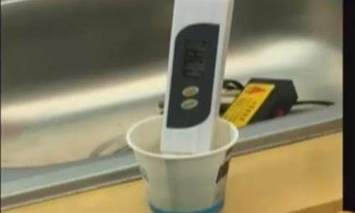 旭哥带着他买的这支TDS水质测试笔,来到了青岛市供水水质监测中心,请教一下这儿的工程师。跟旭哥一样,王主任找来一个干净的烧杯,用自来水涮了几遍,又接了一定量的自来水。将两支TDS笔放入水中,数值立马就出来了。