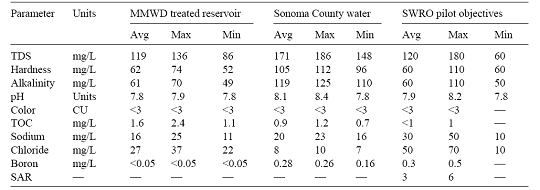 表2. 美国加州市政水中心海水淡化系统的后处理水质目标