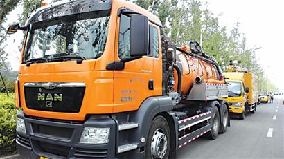 昨天下午2时,记者在现场看到,抢修人员穿戴整齐,安全帽、工作服和警示背心配备齐全,驾驶抢险车辆携带水管、动力站、潜水泵等设备依次进场。设置警示牌后,抢修人员动作麻利,迅速连接水管,投放潜水泵,对模拟积水区域进行紧急排水抢修。目前处于世界先进水平的凯撒联合疏通车、移动泵车也加入演练。演练的考察标准非常详细,包括防汛物资的准备情况,防汛设施的运行情况,防汛人员的精神面貌等。