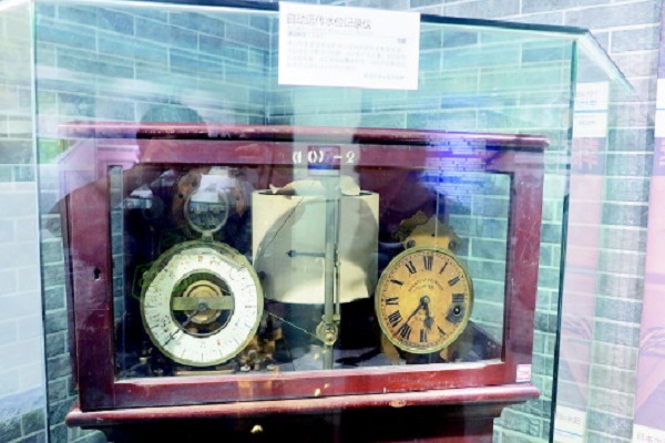 1913年德国制造的自动远传水位记录仪是建设青岛贮水山水池(东池)时的配套设备。主要由计时器、水位标尺显示器、水位时间记录划表器、水位极限报警器组成。该水位仪1985年停止使用,在全国乃至原产地德国也难得一见。