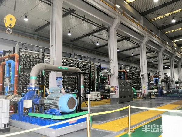 “相对其他水源,海水淡化水比较适合我们的制水设备运行,目前我们每天使用400多吨海水淡化水。”华电青岛发电有限公司化水车间运行专工张莹莹说,就总成本而言,用海水淡化水比用自来水每吨省三四毛钱,职工工作量也要小一些。据了解,华电青岛发电有限公司分两个系统使用海水淡化水,其中,热网系统可以直接用,机组用水需要进一步处理后再用。